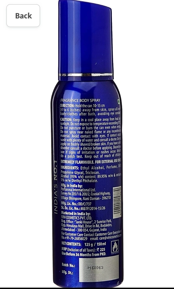 Details Brand FOGG Scent Fresh Item Form Spray Item Volume 150 Millilitres Style Pine