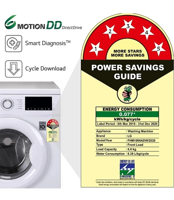 LG 6 kg 5 Star Fully Automatic Front Load with In-built Heater White (FHM1006ADW)