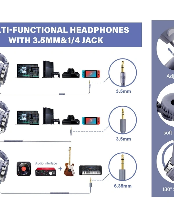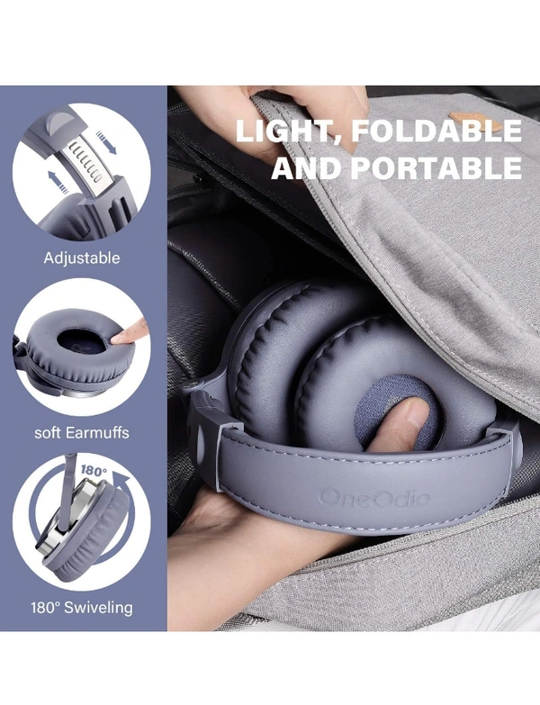 OneOdio Pro-10 Over Ear Headphone, Wired DJ Bass Headsets with 50mm Driver, Foldable Lightweight Headphones with Shareport and Mic for Recording Monitoring Podcast Guitar PC TV(Light Blue)