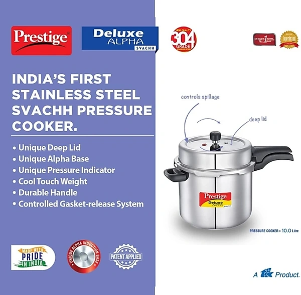 Prestige Deluxe Alpha Svachh 10 L Induction Bottom Pressure Cooker (Stainless Steel